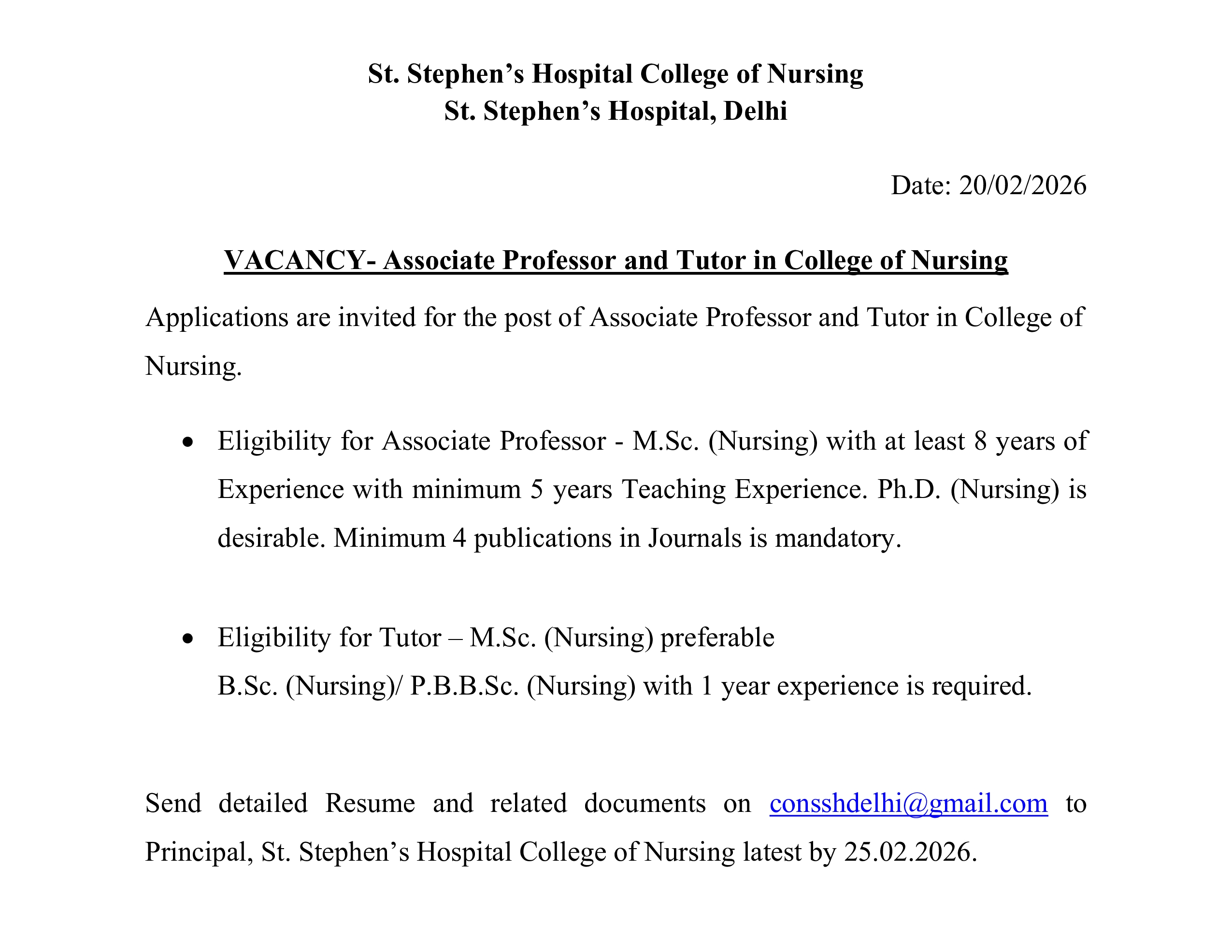 I feel extremely proud and grateful to be graduate of St. Stephen’s Hospital College of Nursing. My three years in this institution were filled with learning and meaningful experience that have laid a strong foundation for my professional career in nursing. The faculty members were not just knowledgeable and approachable their dedication, clinical experience and encouragement played a crucial role in shaping me into a confident and skilled nurse. I also appreciable the supportive environment created by the Principal, tutors and not teaching staff which made learning more comfortable and enjoyable. Thank you St. Stephen’s Hospital College of Nursing for everything. I will always carry the values and lessons learned here throughout my nursing journey. Proud to be a part of this institution.